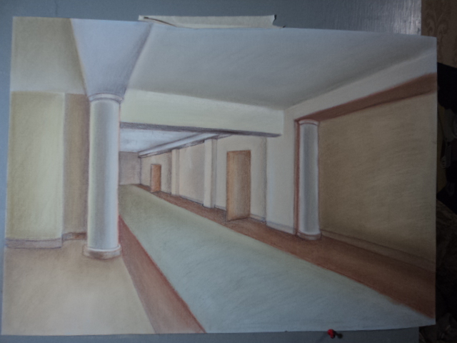 Живопись, точечная росписьЕщё одна аудиторная работа (на перспективу). Соус, пастель, тонированная бумага и мои ручки