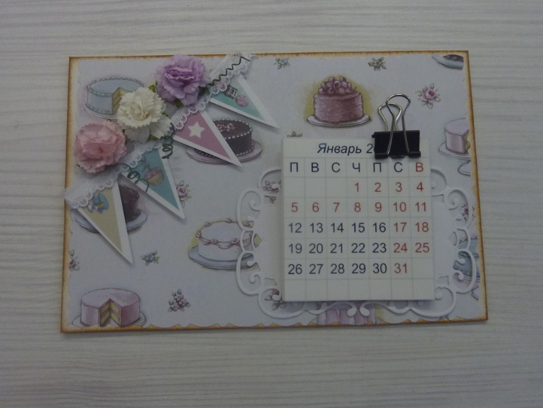 Доброго дня! Сделала на подарки - календари на холодильник, сначала хотела в новогодней теме, а потом решила: не каждый день Новый год.