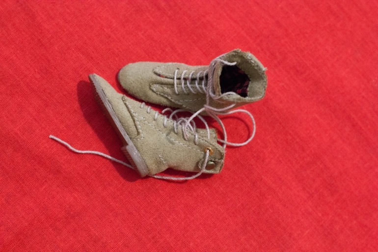 Истинно ювелирная работа! Обувь, так просто за гранью моего понимания. Такие крохотные ботиночки, а все детальки проработаны, клепочки есть и даже подклад!