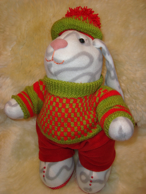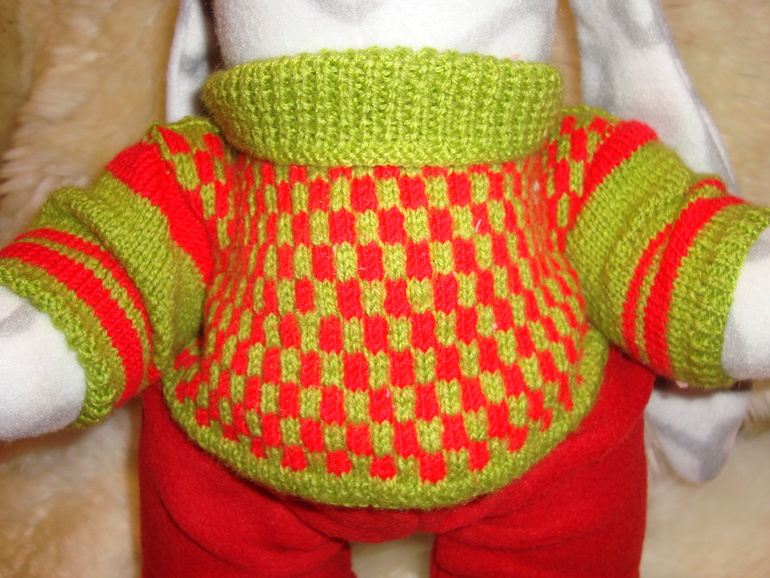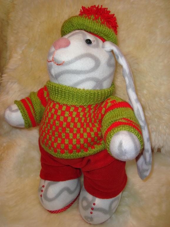 такой прикольный заяц получился!!!! а свитерок — я бы такой сама носила:)))