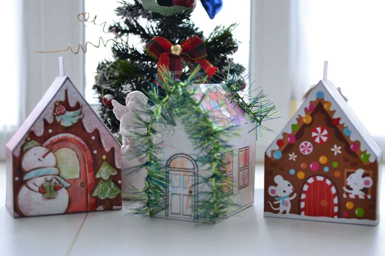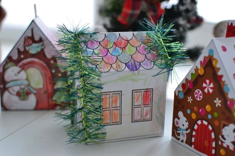 Шаблоны домиков распечатывала на формате А3 на глянцевом плотном картоне.