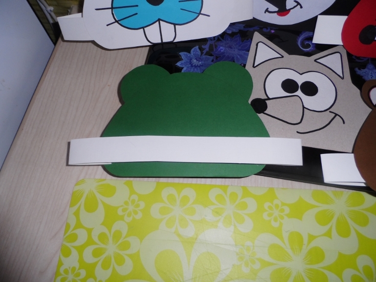 Решила я, что гости сыграют сказку Теремок для двухлетней именинницы. В срочном порядке сделались маски, которые одеваются на головы.