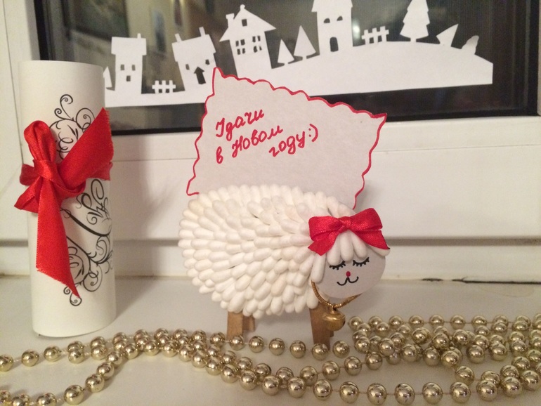 Поделки с детками.Девочки, всех с наступающим! Овечку смастерили с дочей, мама делала, доча мешала)) простая в изготовлении, но всех, кто видел живьём, улыбнуло)))