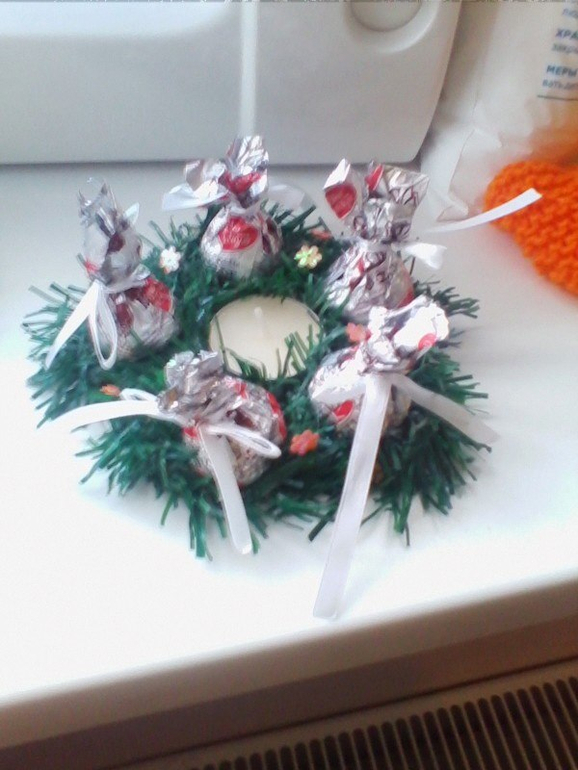 ну это не на дверь, это на основе старых дисков подсвечники, а если венок, то нужна газета(или основа специальная), елочные ветки(я купила елку в фикс прайсе и ее раздербанила), клей и украшения)))