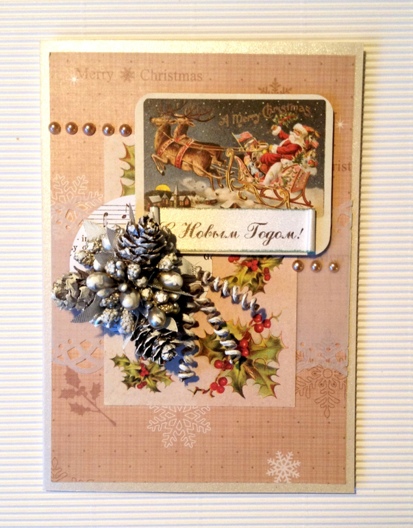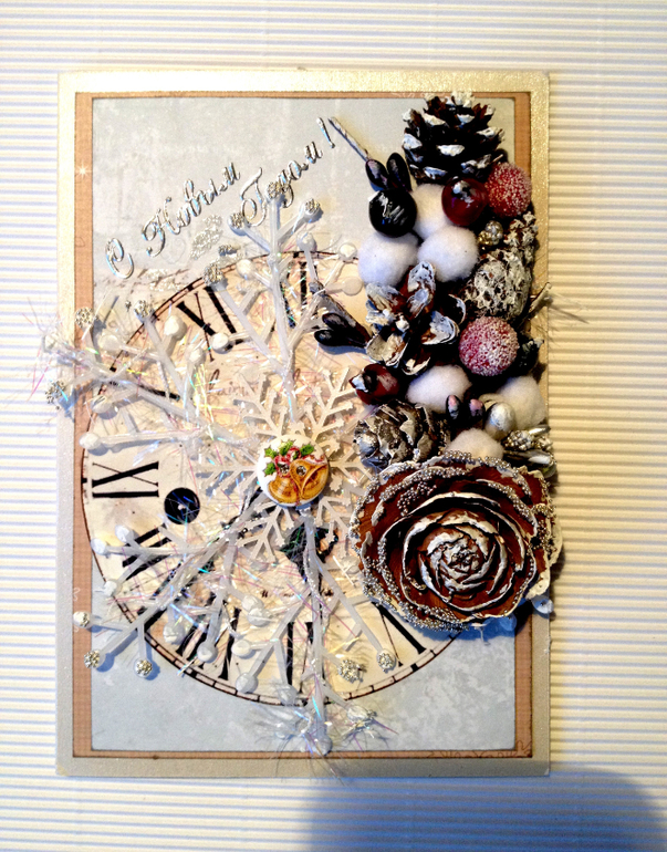 К стати, шишки на 3-й открытке не покупные, мы с ребенком осенью сами в лесу собирали )))