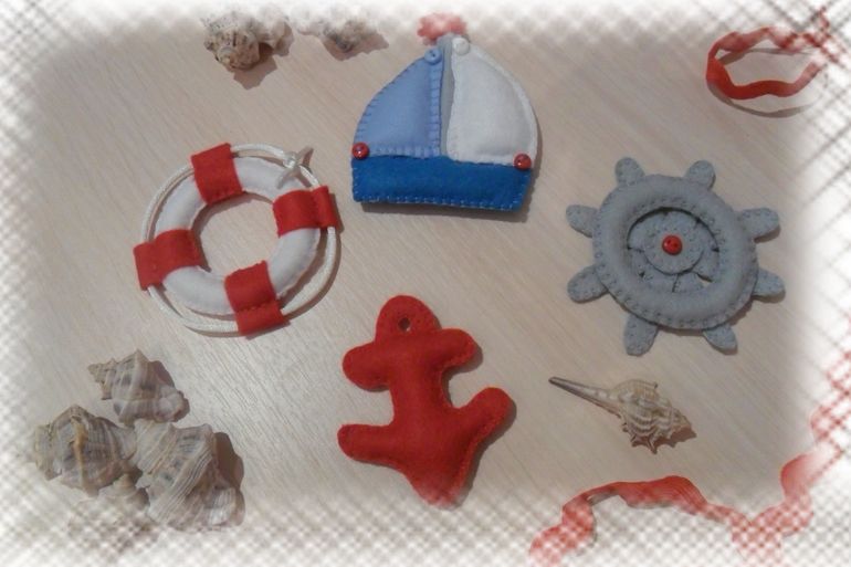 ФетрПосылка дошла до адресата,поэтому теперь могу показать мои рукоделочки. На морскую тему делала впервые,так понравилась фантазировать! Вот что у меня получилась: