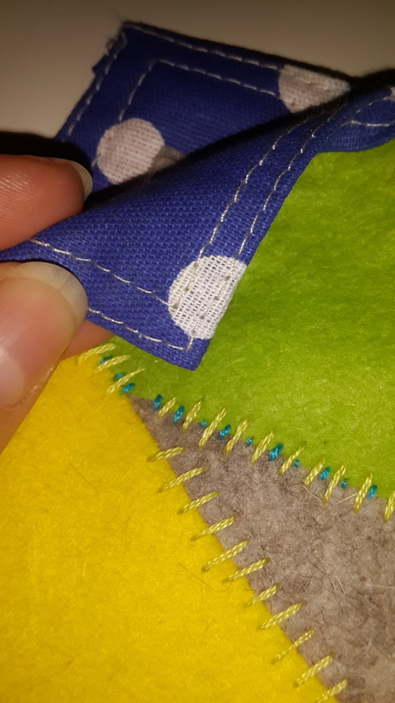 По факту это должен был быть прямой угол:( По какой-то причине вот так вытягивается нижняя нить. Я перепробовала все - меняла натяжение, меняла сочетание ткань-нитки. С обратной стороны все ок