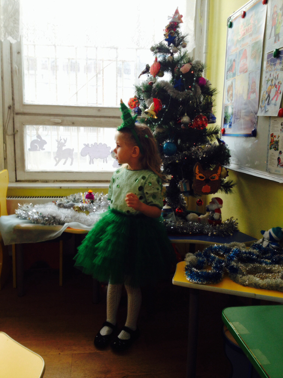 Моя крошка, как и многие в этом году, на новогоднем утреннике в саду была елочкой) вот такая елочка у нас получилась))