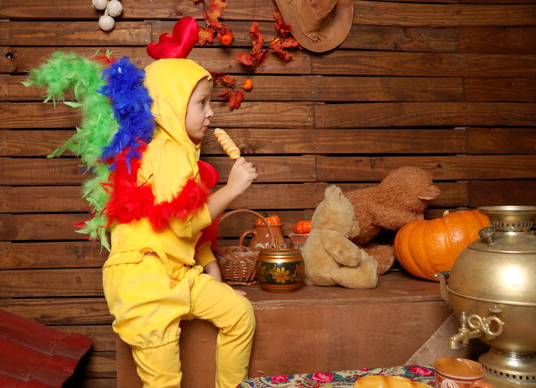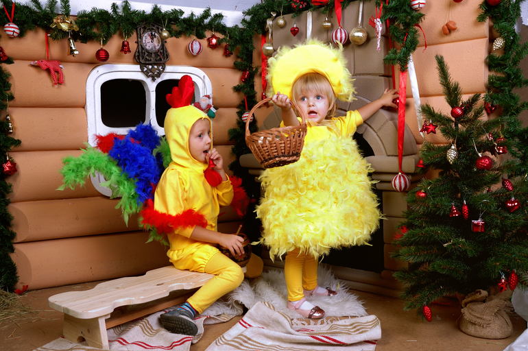 Как обычно перед Новым годом суета, много всего интересного происходит, еще больше хочешь успеть, разрываешься на части.... Коротко- сын в конце лета захотел на Новый год костюм петушка. Другие варианты категорически не нравились. Раз сын - петушок, значит дочка - цыпленок. Костюмы в принципе не сложные, но вот пришивание перьев.... Конечно же в это время было много заказов на пошив платьев, шила урывками. На Цыпленка ушло больше 10 метров перьев (боа), за счет чего платье стало отлично держать форму.
