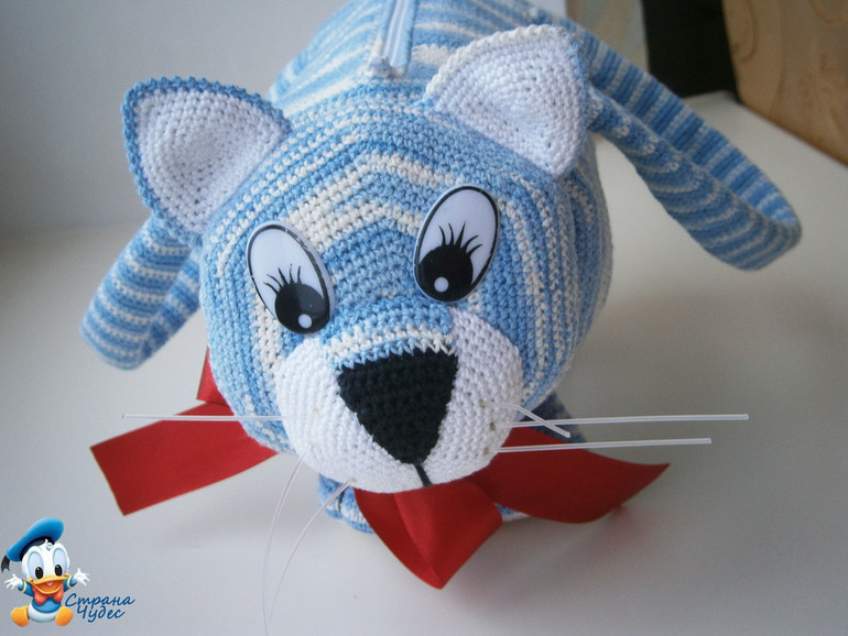 Вязание крючком (РАБОТЫ И СХЕМЫ)Вот такой вот кисун родился у меня на днях.Усатый, полосатый и вместительный.