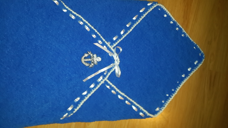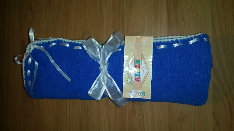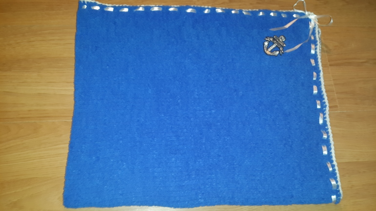 Срочно связалось одеяло - плед для новорожденного. Малыш появился немного раньше срока, поэтому и срочно. Ниточки были куплены еще год назад в большом количестве. Но тогда у меня была машина только 5 класса, которая им не подошла. Связано на 3 классе. Долго думала над обвязкой. Решила обычным рачьим шагом + лента. Сочетание синего с белым для сына моряка.