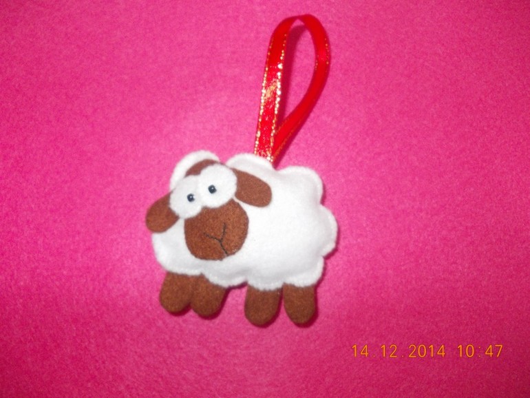 ФетрСначала конечно решили сшить овечку.По моему нормально получилось дочка конечно больше помогает рисовать, кроить, вырезать.А шью пока все-таки я.Овечки сшили две - одна уже нашу елочку украшает, а одну сегодня бабушке подарим