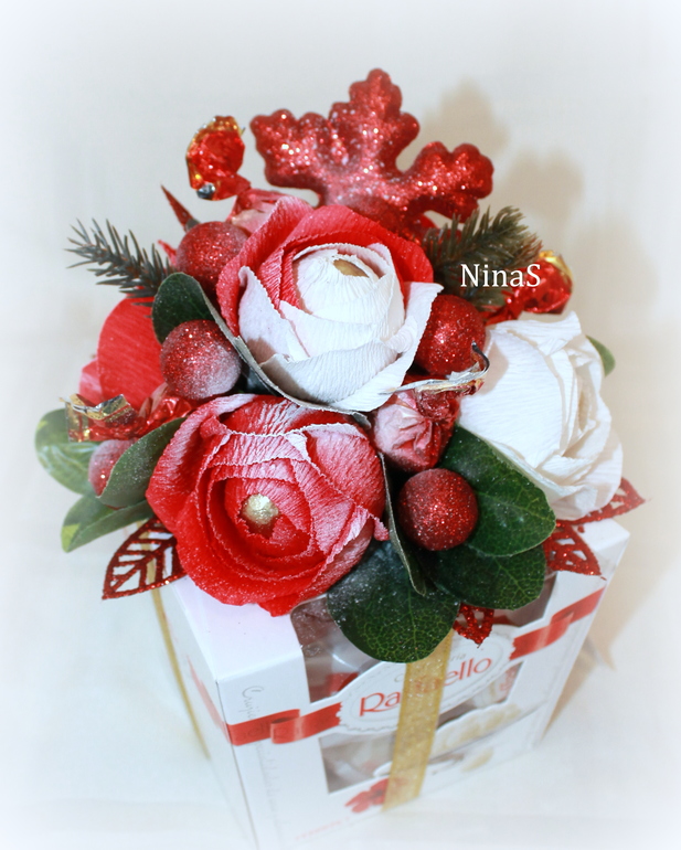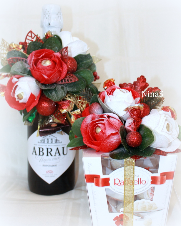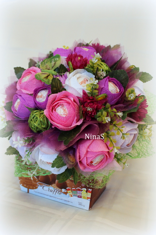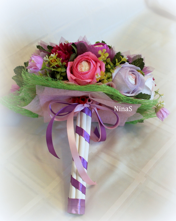 Букетик был для девочки на 18-летие вот такой вот вышел, популярны нынче рафаэлки.