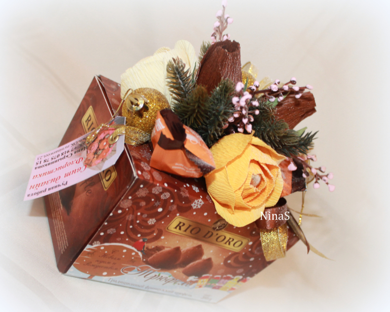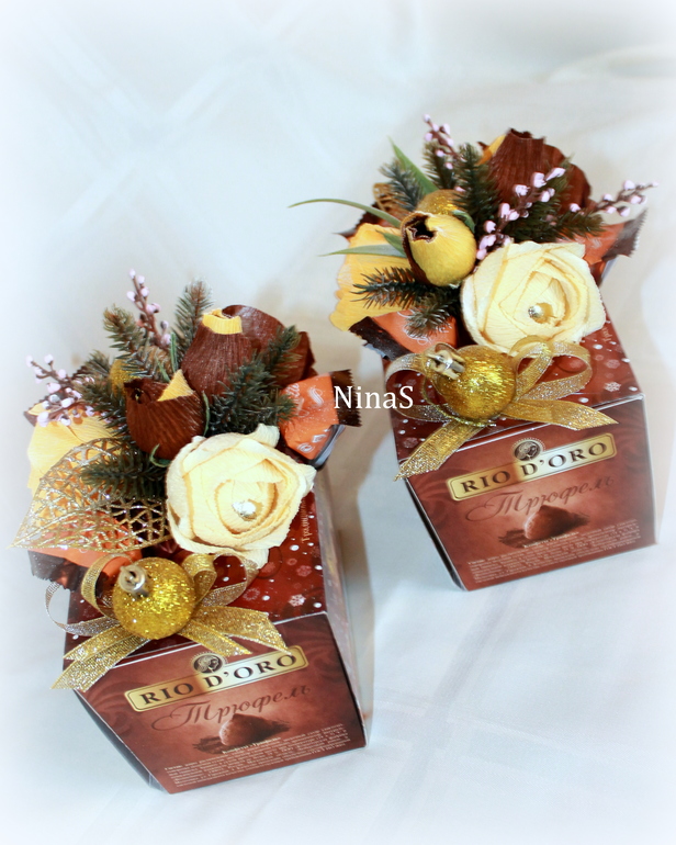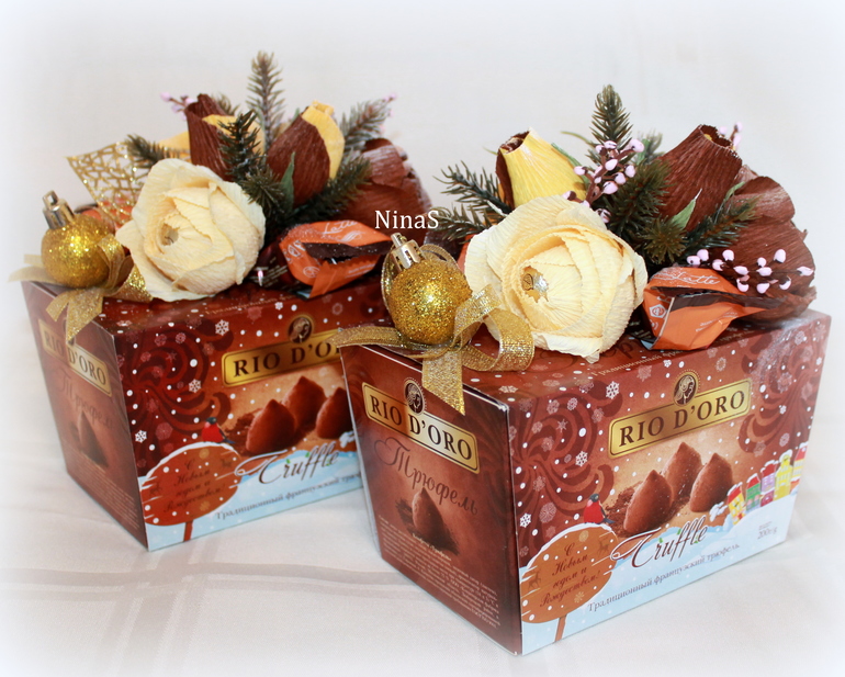 Украсила три коробочки трюфеля на подарок, потянуло меня на коричневый.
