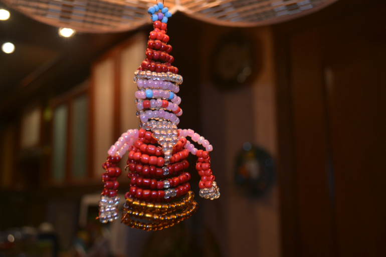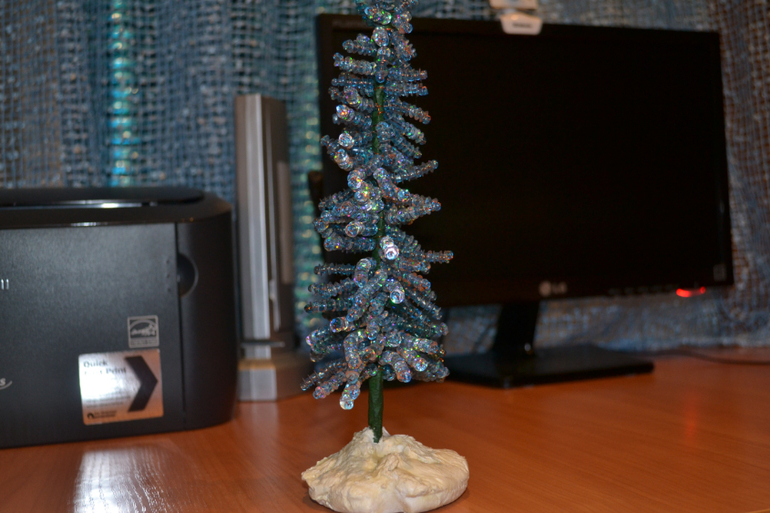Это наша бисерная елочка, плели, правда в прошлом году, это наша первая тяжелая поделка, Анютка здорово намаялась с ней.