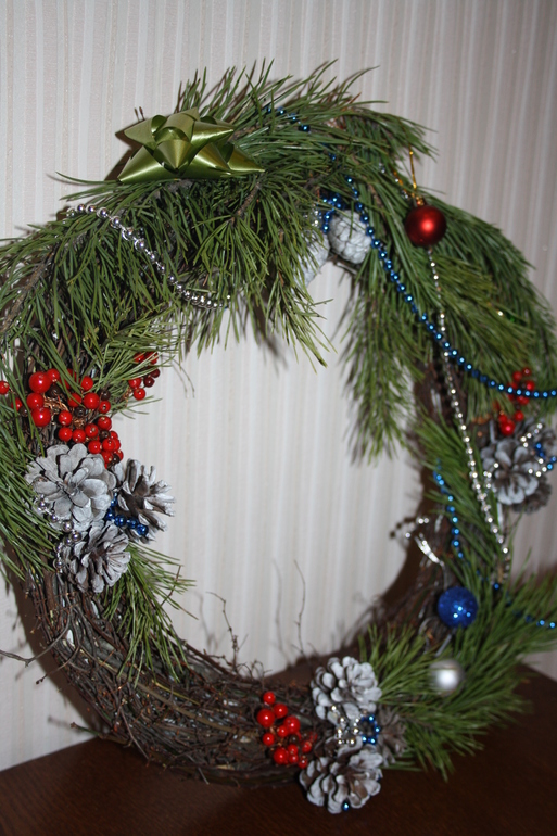 Решила вот впервые занятся хенд мейдом и делать новогодние украшения своими руками, пока меня хватило только на новогодний венок) но в планах еще игрушки из фетра на елочку (правда не знаю успею ли я).Буду украшать квартиру, так как елку еще не купили) Слушать новогоднюю музыку и лопать мандарины))))