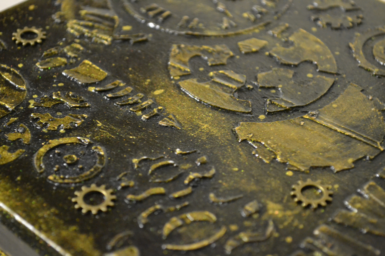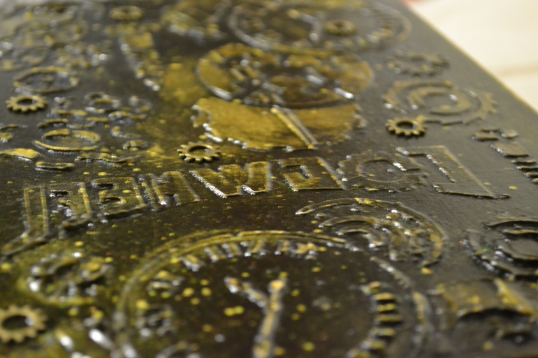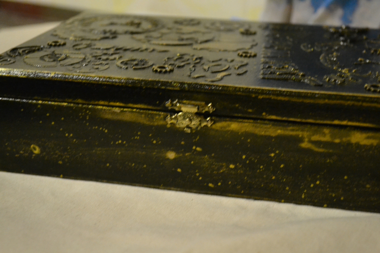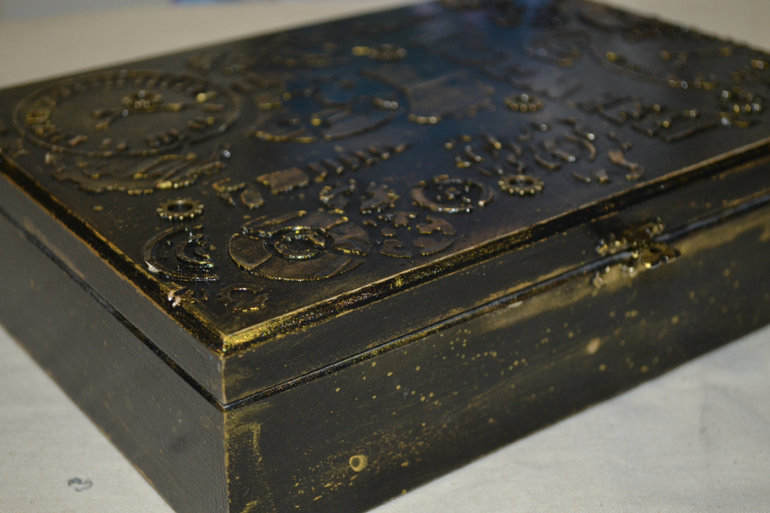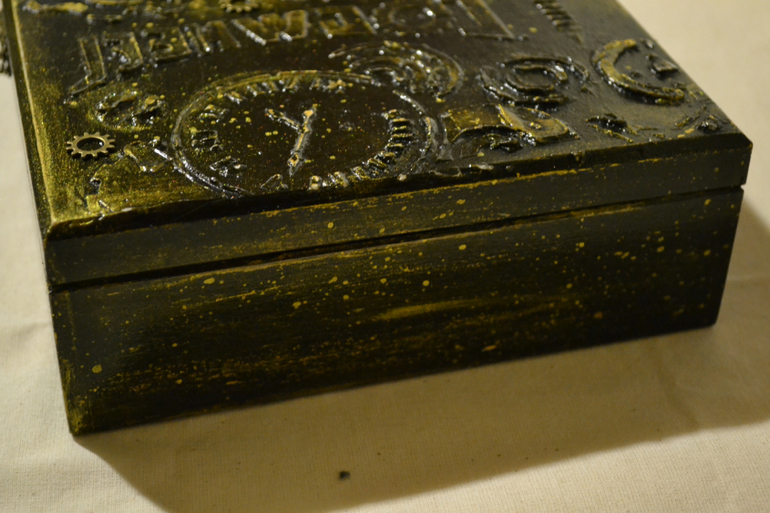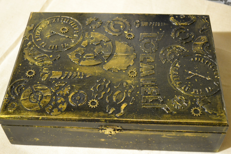 Купюрница сделалась в стиле стим панк- рисунок шпатлевкой акриловой,потертости,брызги и шестерёнки!