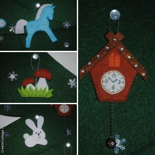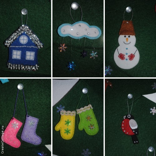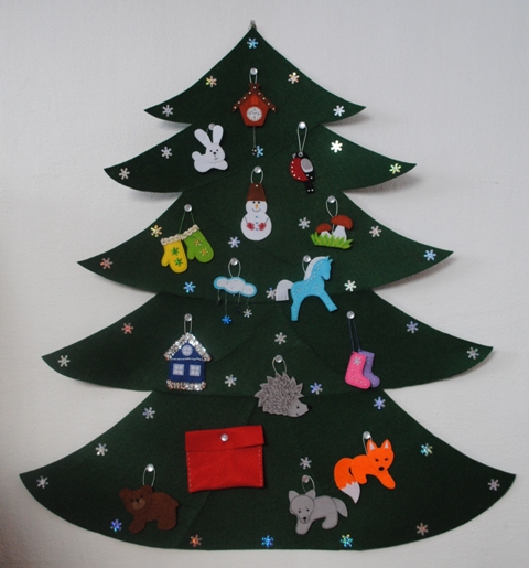 ФетрРебенок подрос и решила я ей в этом году сшить елочку ожидания Нового года. Сшивала ее из кусочков фетра, снежинки-пайетки приклеены на момент кристалл, пришиты пуговки, чтобы вешать игрушки. Рост елочки 80 см, ширина 60. Игрушки сшила всего в количестве 14 штук, т.к. наряжать ее начали с 25 числа, не люблю долгое ожидание, теряется ощущение праздника))) Каждое утро дочка бежала проверять красный конвертик на елочке, т.к. именно туда ей зайчик приносил игрушки))) Сегодня вся елочка наряжена и в гости к нам придет большая пушистая елка, которую мы будем наряжать уже ближе к вечеру. Игрушки плоские односторонние, все сшито на руках, приклеены термостразы. Все из фетра (жесткий, мягкий) толщиной 1-2 мм. Дочь в восторге, мама млеет, даже папа оценил ))