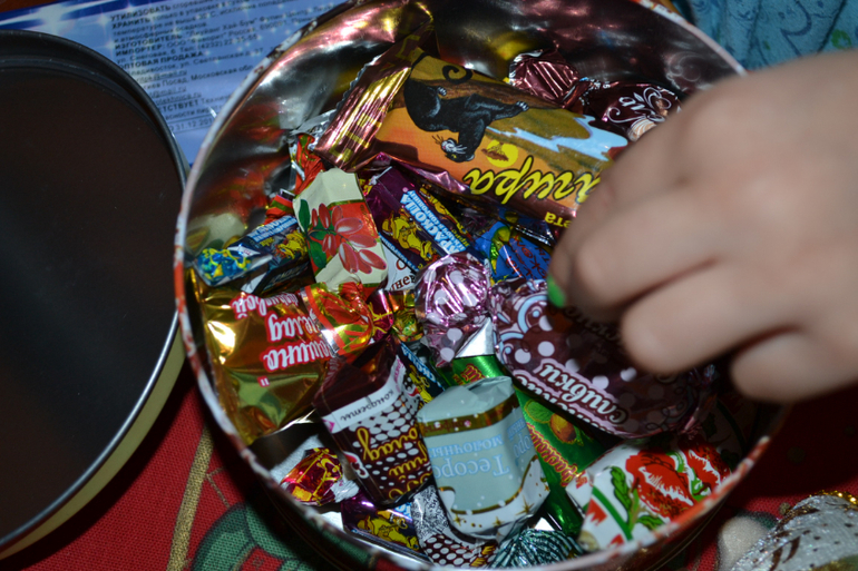 обожаю жестянные банки)))))и там были конфетки и супер шар новогодний с вкусным чайком!!!!!!!!!!!!!!!!!