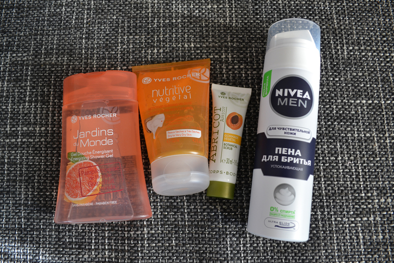 И разные разности для любви к себе - гелик для умывания, скрабик для тела и гелик для душа с моим любимым грейпфрутовым ароматом....ммммм.... Анечка, я балдею от этого аромата)))) и от мужа отдельное СПАСИБИЩЕ за пенку для бритья))
