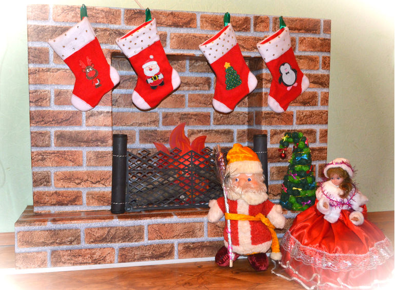 Декор, витражи.Дорогие ББ-шечки поздравляю всех с НОВЫМ ГОДОМ! И желаю счастья в доме! А теперь собственно о камине.)) Захотелось мне сшить носочки для подарков, а камина нет...Значит надо сделать (домашние на мою такую идею повертели пальцем у виска) , но все таки помогли мне воплотиьть идею. Поиск огромной коробки происходил долго.. но ажиотаж с покупками телевизоров сыграл в мою пользу - коробка шириной 120см была найдена и притащена домой))) и вот что из этого вышло))