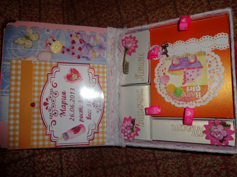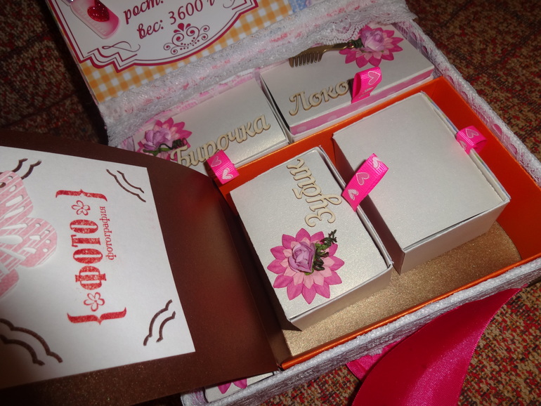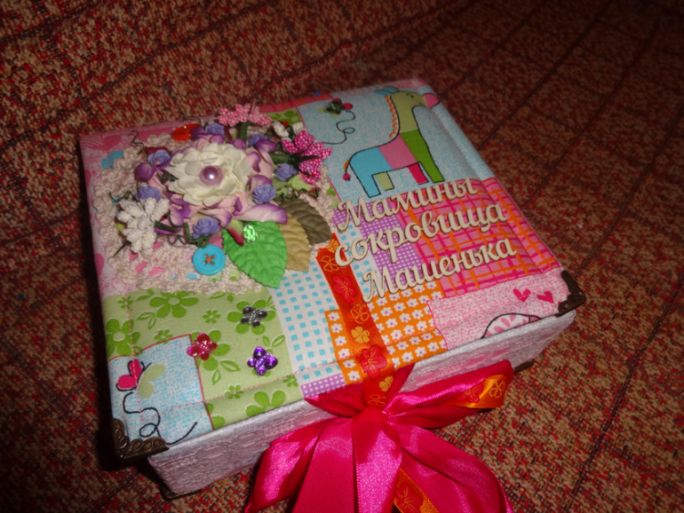 А теперь коробочка для крестницы- подарить смогу только 4 января, а похвастаться хочется уже сейчас, обещаю упаковать обратно перед дарением :) Яркая и нежная одновременно, очень милая, как наша Машенька!