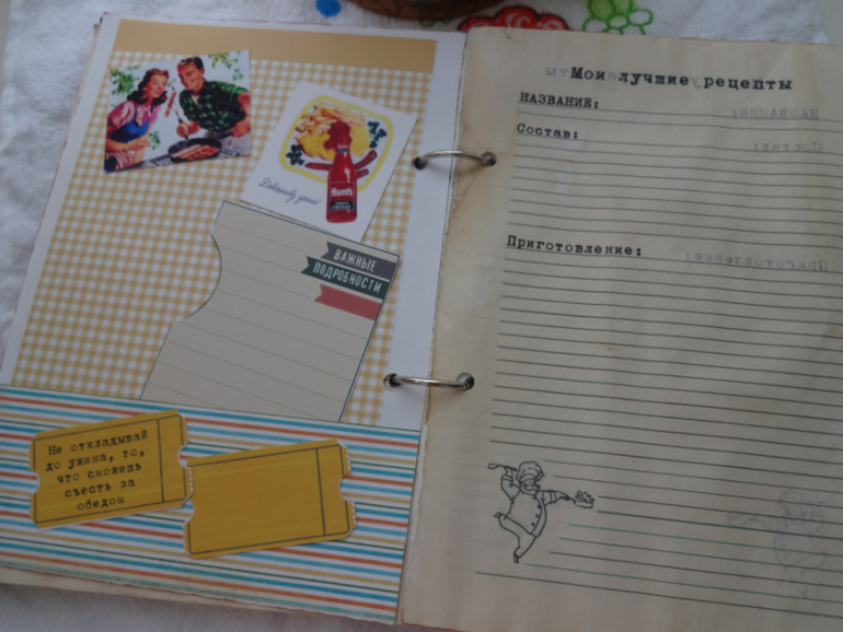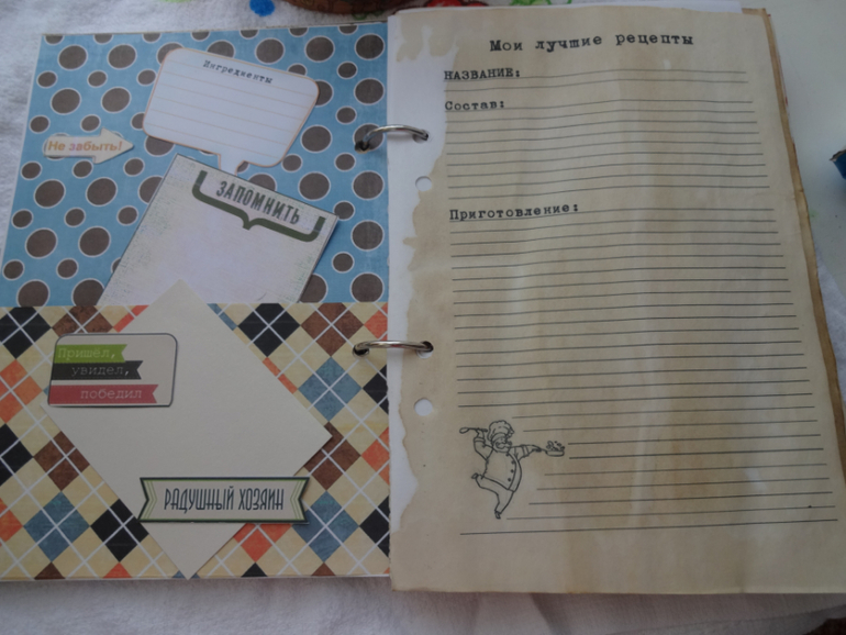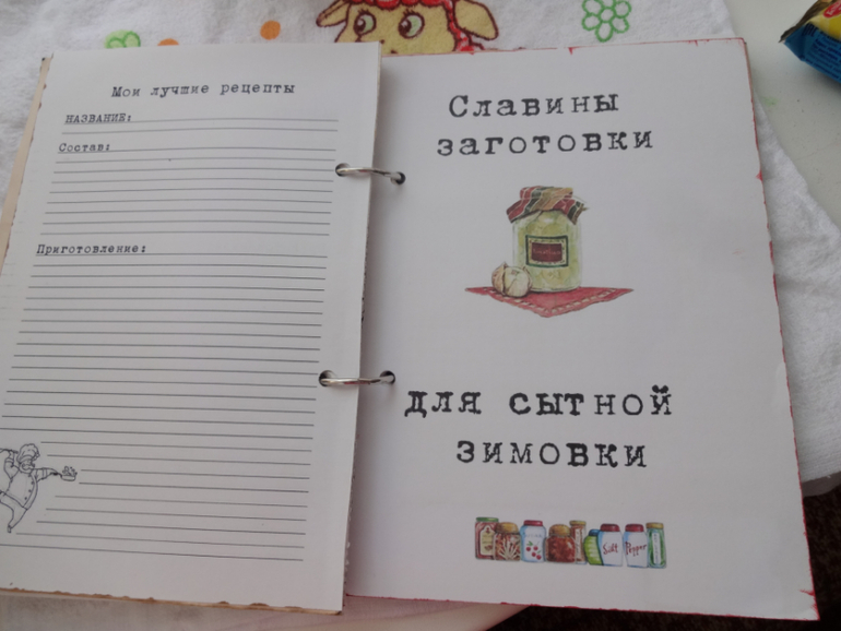 И кулинарная книга - ооочень классная! Именная, с кучей тегов, фишечек, закладочек, кармашкой, состаренных страничек и тому подобных штучек!