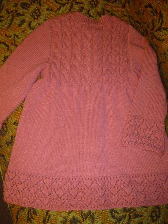 Спасибо!!! Да, этой красавице все идет!!)))) Там, где косы, убавлений нет. А вот в области подмышек, где складок нет, при переходе на изн гладь убавляла количество петель.