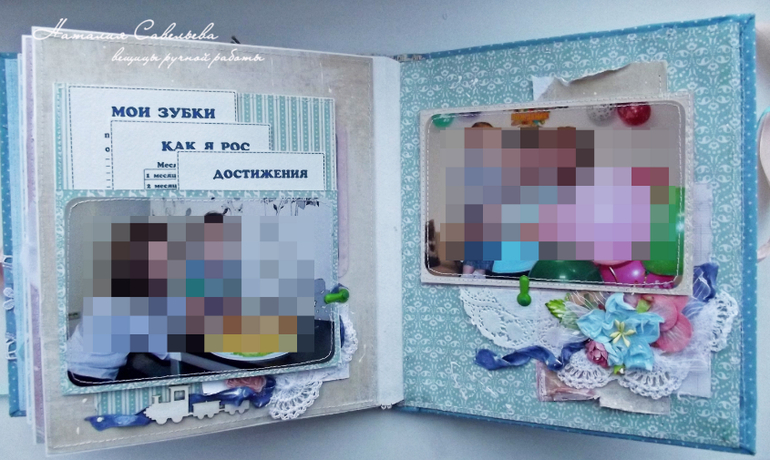 СкрапбукингВсем привет! Хочу показать вам альбом, который сделала для одной замечательной девушки и её сынишки))) Размер альбома 20х23, вмещает 30 фото размером 10х15 и 9х13. В альбоме есть секретики, теги для записей и карточки, где мама запишет самые важные моменты первого года жизни малыша. Смотрим? Фото под катом будет много)