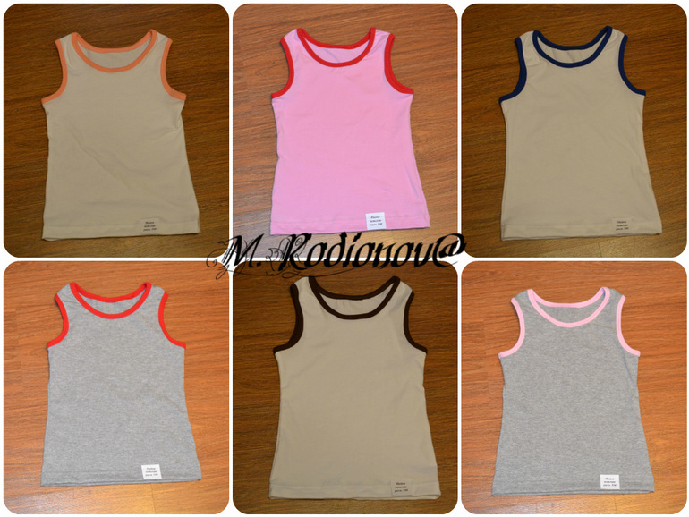 ДВ! У маек бейки сделаны из рибаны с лайкрой. Резала сама, а потом пришивала на распошивалке с помощью окантовывателя.