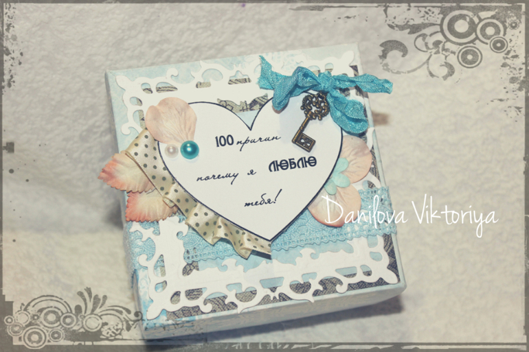 Эта голубая-нежная коробочка у меня в наличии, ну уж очень мне захотелось такую сделать.