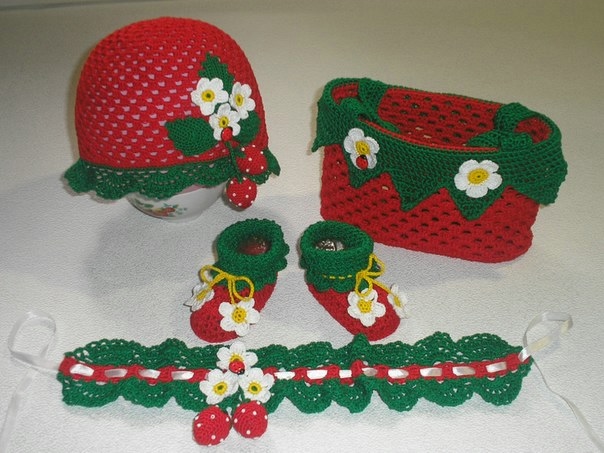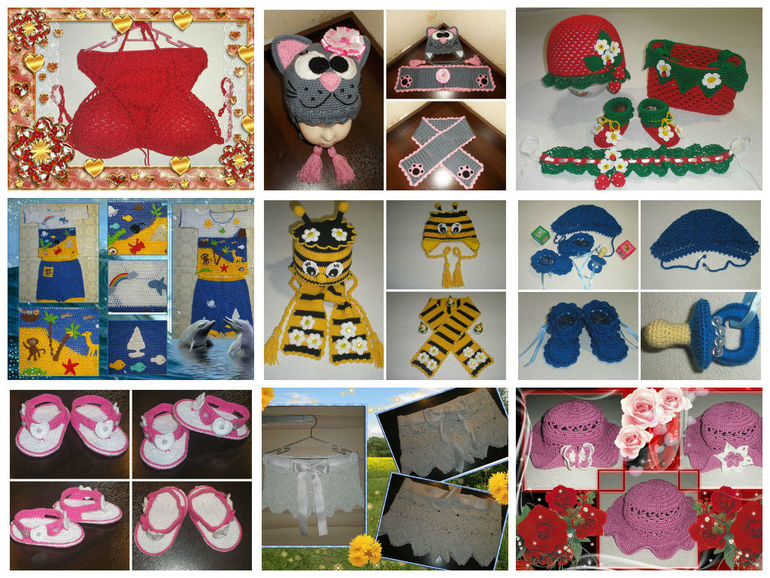 Комплекты на размер 3 годика и 0-3 мес. Нитки Анна 14, общий расход 250 гр., крючок 2.