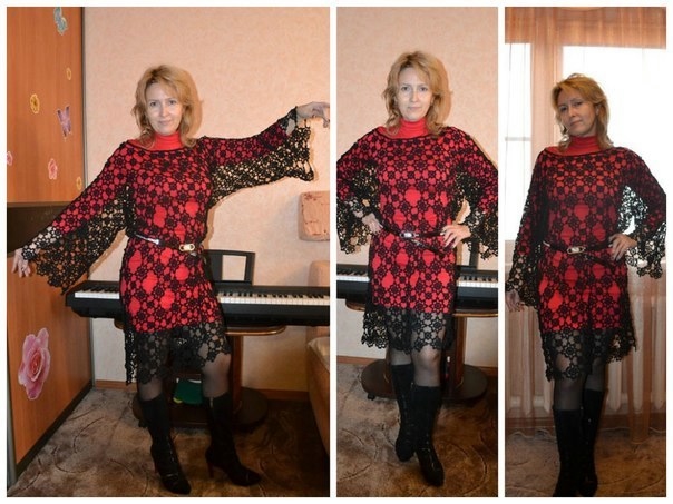 Для сестрички платье-туника из мотивов,пряжа-хлопок