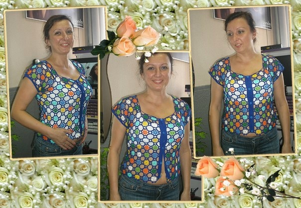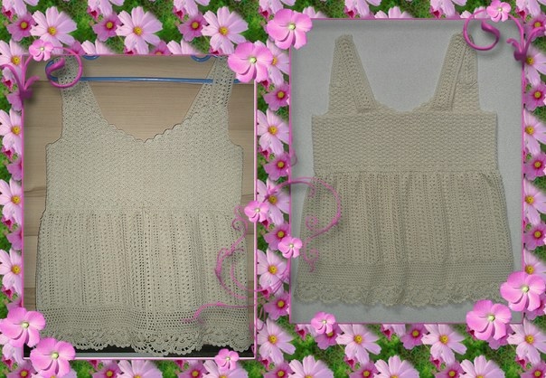 Ажурная блуза.Мотивы из сосо, основной цвет-нитки Анна 14, крючок 2.