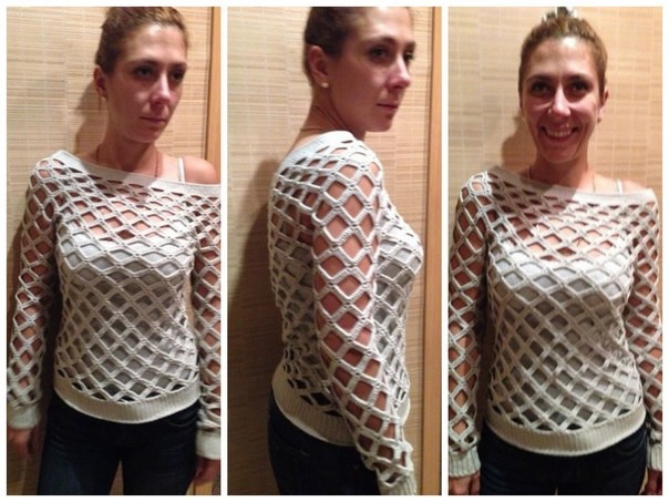 Кофта-сетка,Ниточки Джинс, крючок 2,5.