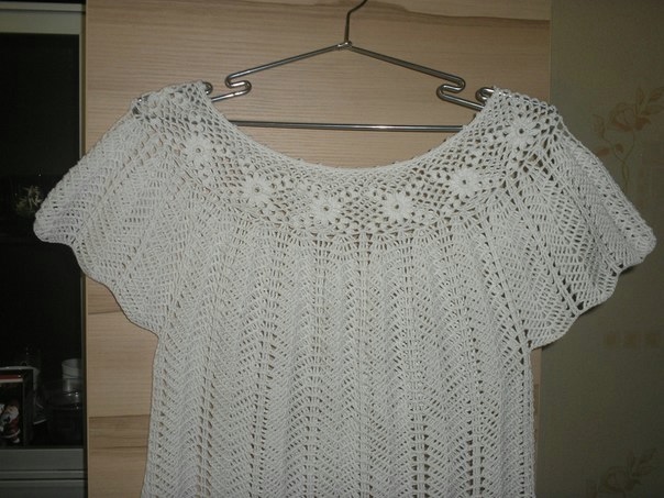 Связалось такое платье, размер 44-46, нитки Анна 14, расход 350 гр, крючок 2.