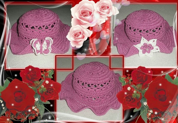 Детская панама с съемными цветком и бабочкой)Нитки rose в 2 сложения, крючок 3(узор позволяет продувать ветерку, защищать от солнышка, да и в Питере лето всегда не такое уж и жаркое)...