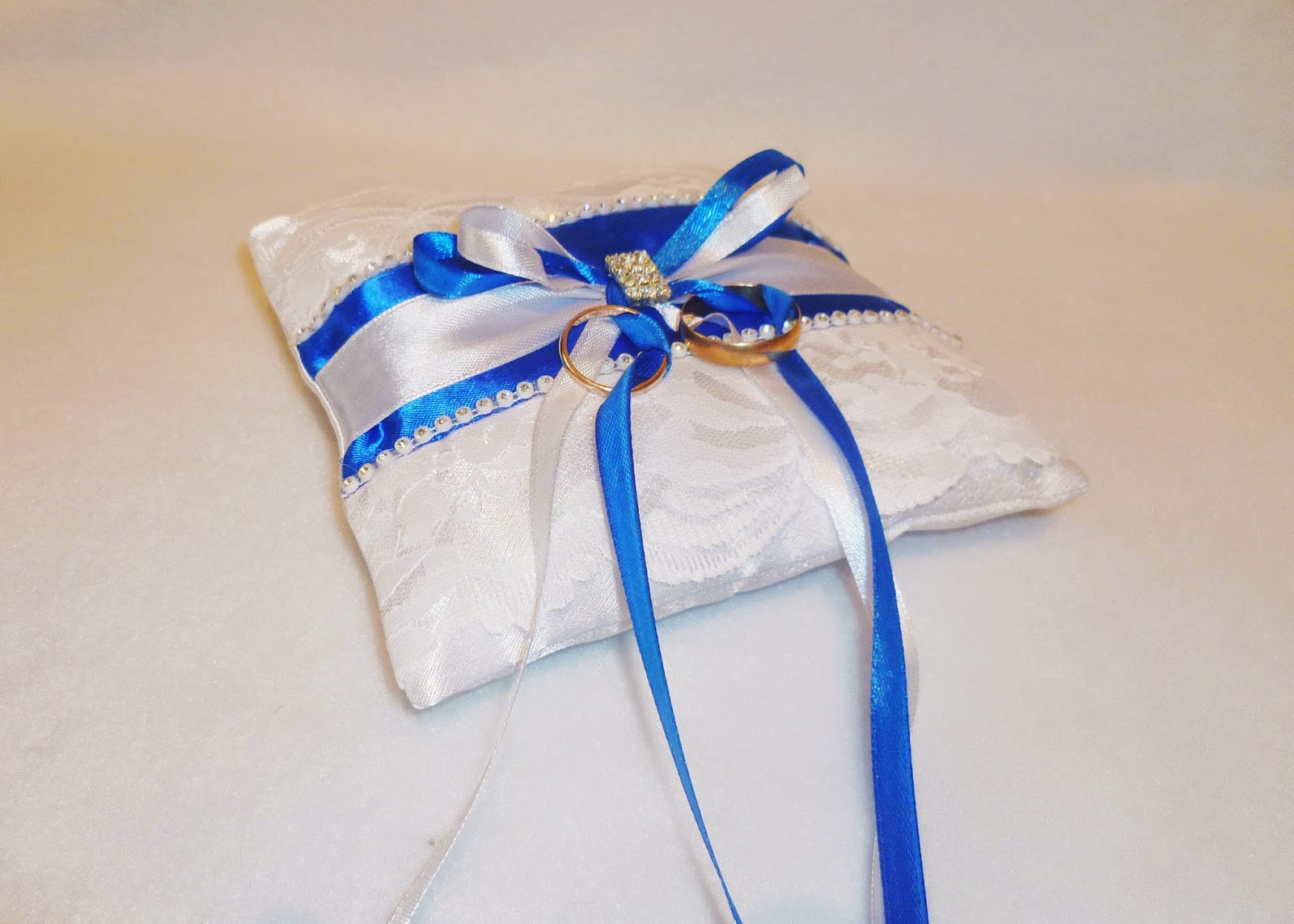 На очереди подушечки для колец в цветах свадьбы. Их две.