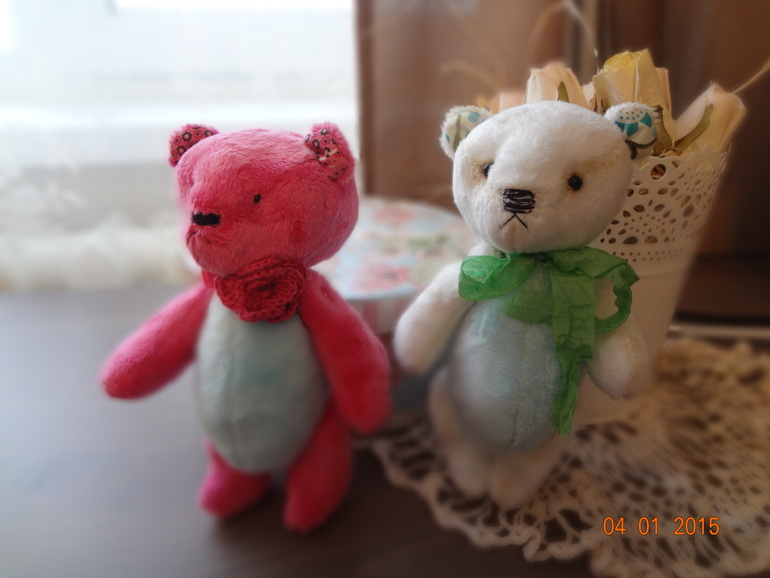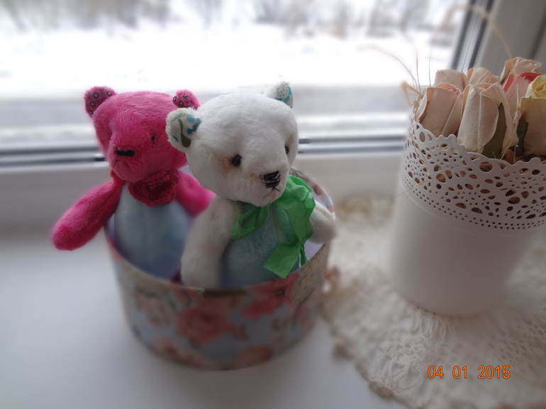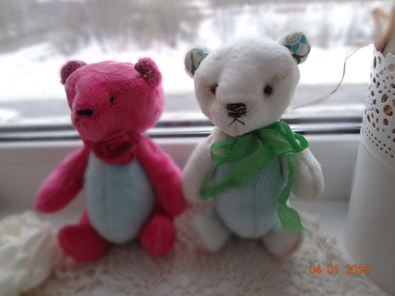 Игрушечный мир - животныеСшила в подарок для двух сестричек таких небольших мишек ростиком 17см. Мишки сшиты из плюша,головки на шплинтовом креплении- крутятся,ручки и ножки на пуговичном,двигаются. Набиты синтепоном и утяжелены металлическим гранулятом.