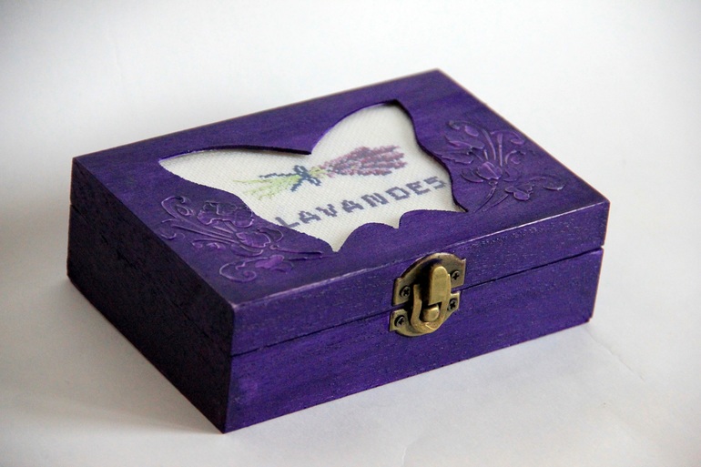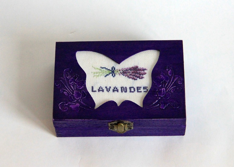 Лаванда - мини-мотив вышивается быстро. Внутри ничем не обрабатывала, подойдет для кухни - для хранения трав и приправ.