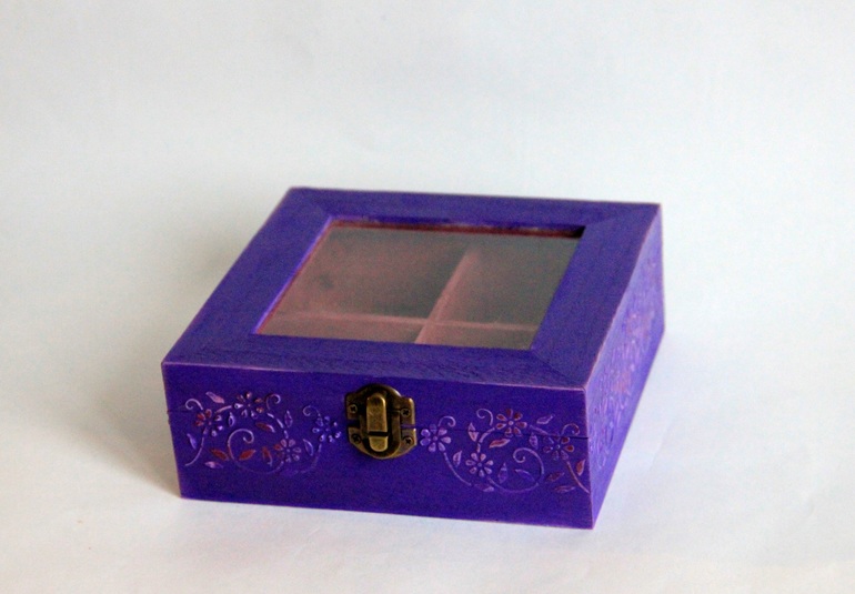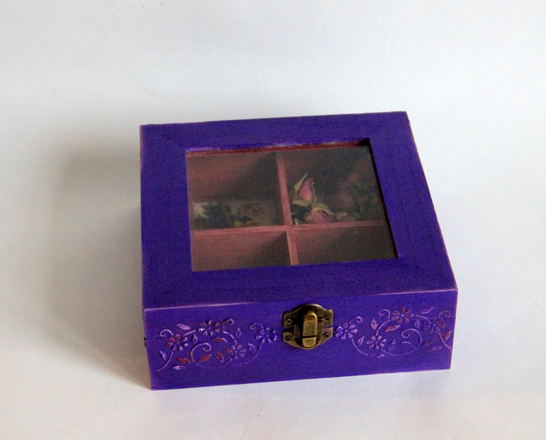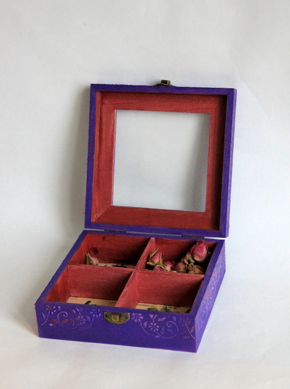 А вторая шкатулка для рукоделия, с разделителем внутри - пуговки, бусины, сухоцветы - все можно положить туда)))