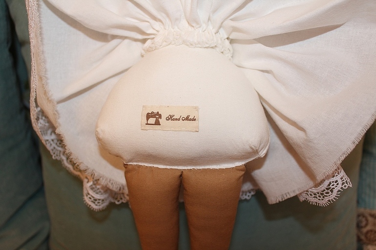 Материалы: немецкий хлопок, бязь, кружево на сетке, атласные ленточки, бархатные ленточки, розочки из лент ручной работы, бисер. Наполнитель : синтепух. Волосы и глаза -роспись акрилом по ткани.