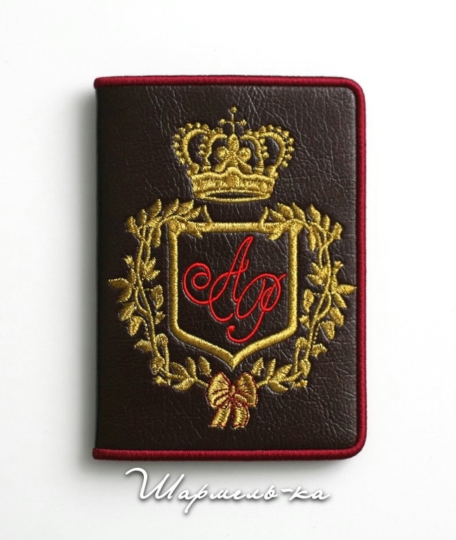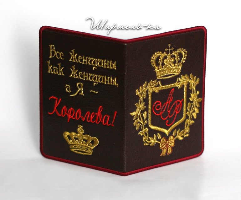 Вышитая обложка на паспорт "А я - Королева! Бордо"