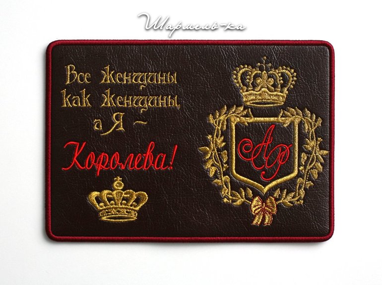 Вышитая обложка для паспорта с вензельной монограммой хозяйки обложки и популярным утверждением про королеву :))).