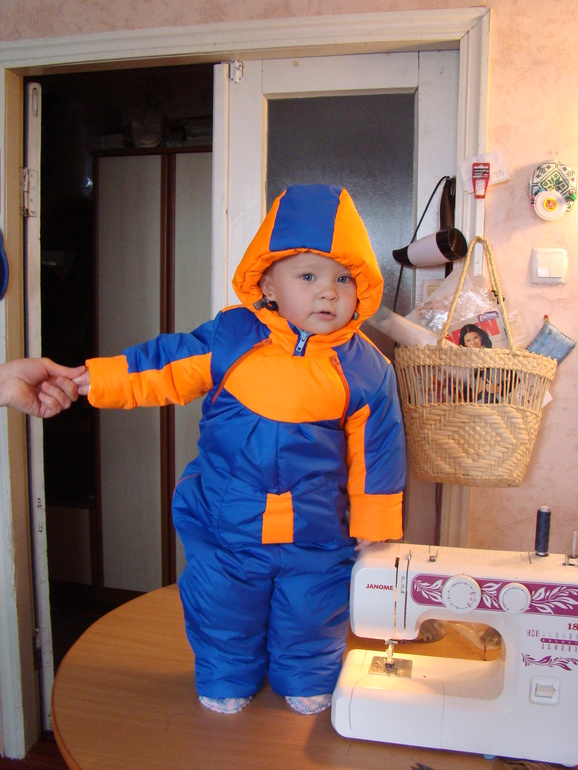 Шитье одежды, выкройки, ремонт одежды, шторы, швейные машины (уже приобретенные)Вот такой комбинезон сшила для дочки моя мама, аж сама себе завидую, что у меня такая мама, а в детстве так хотелось ходить так как все дети в одежде с рынка. Сейчас уже на капюшоне есть отделанная строчка, фото с первой примерки