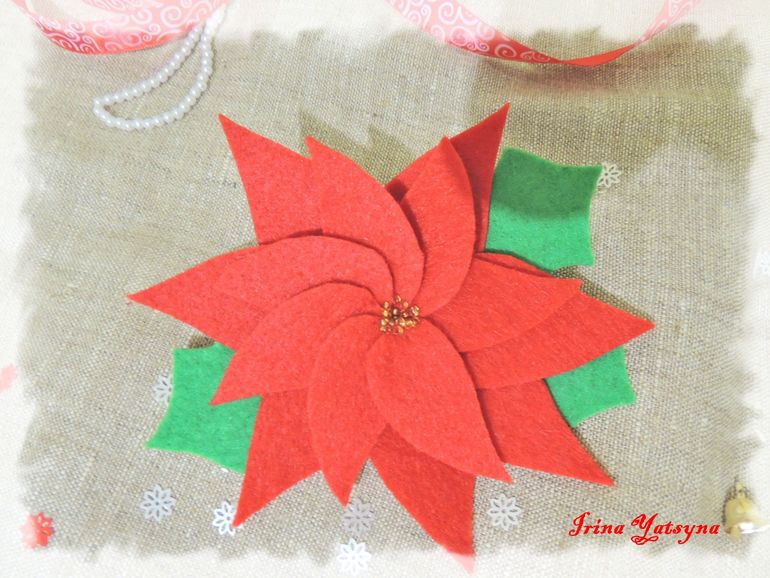 Какой же Новый Год без пуансетии! Крепится к елке на зажим.