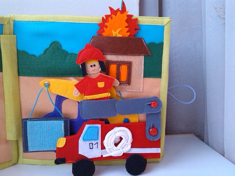 Сшилась книжечка для 3-летнего мальчика Виталика. Сюжеты взяты из книги по профессиям, которую я шила для сына год назад. Много фото под катом.