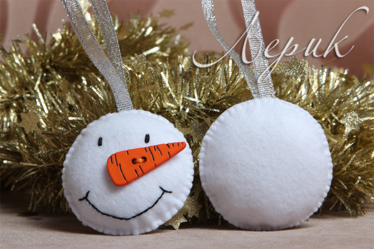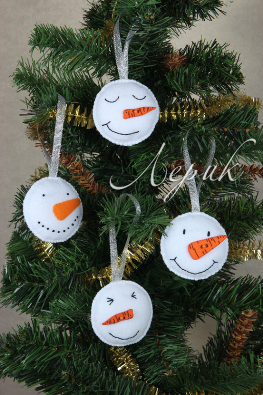 Пожалуй так быстро, как снеговиков, я ни одни другие игрушечки не шила)))) А на пяльцах, действительно, на обороте просто белый жесткий фетр