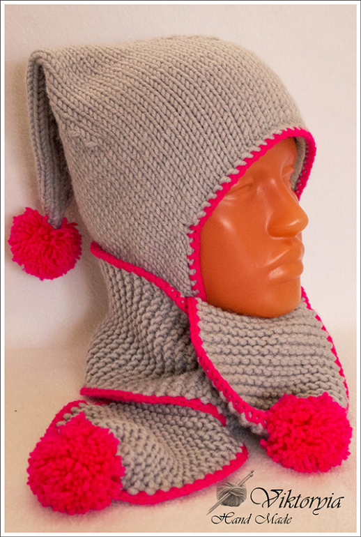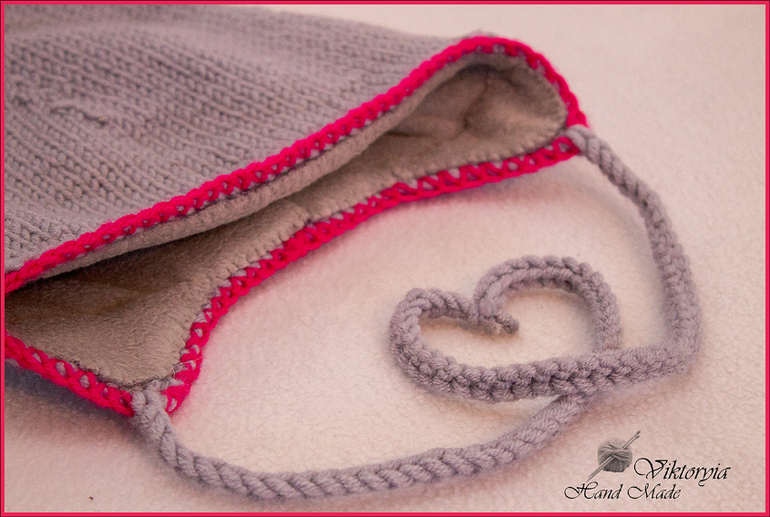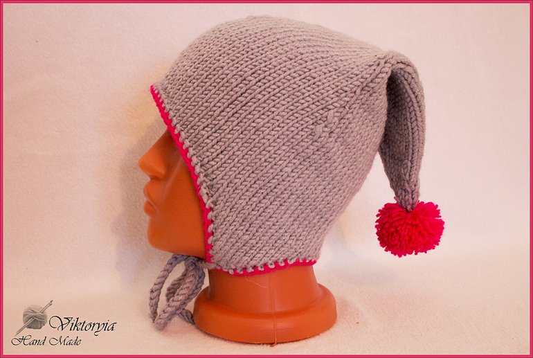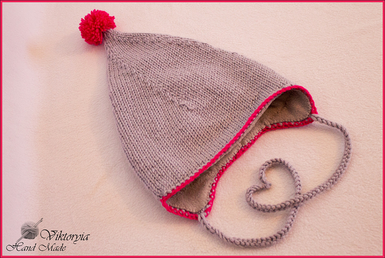 Ушло ровно 2 мотка серой и пол мотка Ярн Арт Бэби малинового цвета на обвязку и помпоны