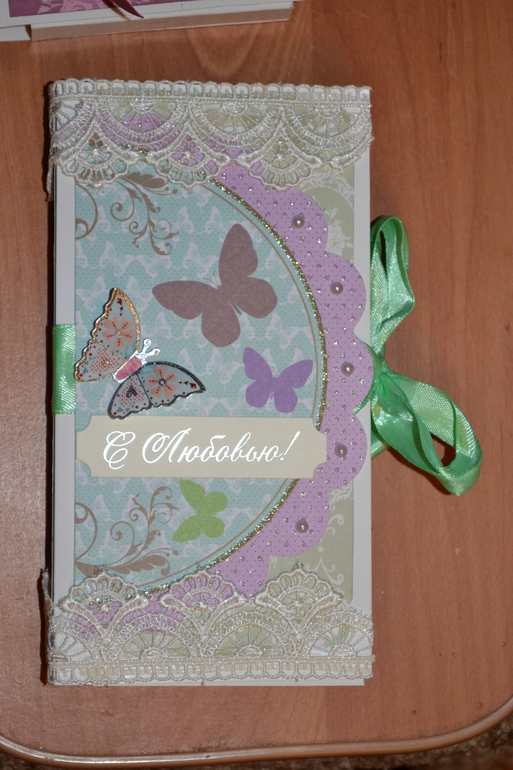 Поэтому, когда собрались вместе: Я, подруга моего сына и подруга моей дочери... Мы сели в кружочек и по МК из инета, абсолютно не зная принципов правильного скрапа, начали творить... Плохо ли, хорошо ли у нас получилось.... Но удовольствием получили ВСЕ))))) Я даже после этих посиделок ещё три штучки сделала, но сфотографировала только одну)))